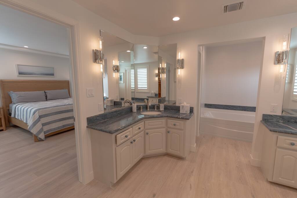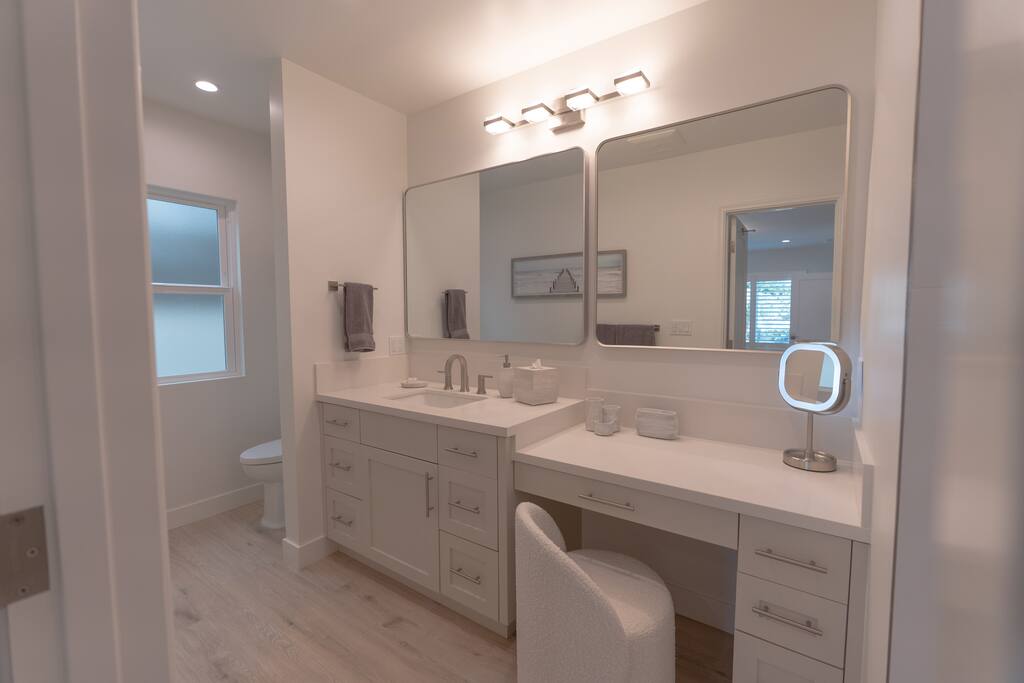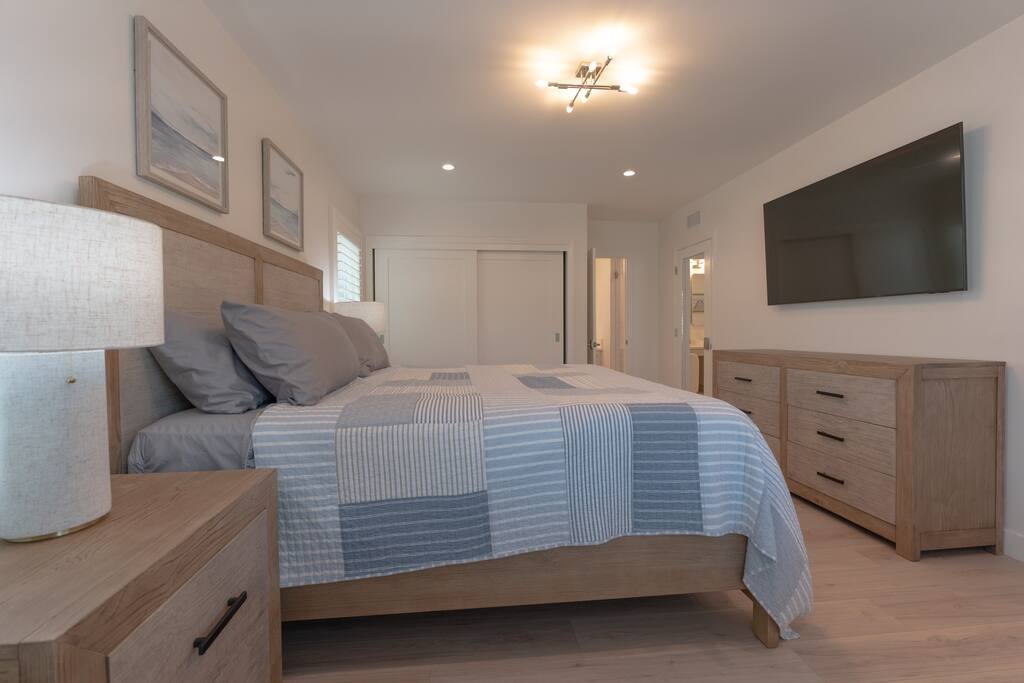 Relax in this bright coastal retreat just steps away from the beach at The Bayside Estate. This stunning modern home offers 5 bedrooms and 5 bathrooms, thoughtfully designed for comfort, privacy, and effortless group living. Highlights- •Double primary suites upstairs and downstairs with King Beds •Gourmet kitchen with full coffee bar •Private office space •Laundry room •Movie room with games •BBQ & outdoor dining •Koi Pond •AC and heating •Massive backyard with BBQ & outdoor dining